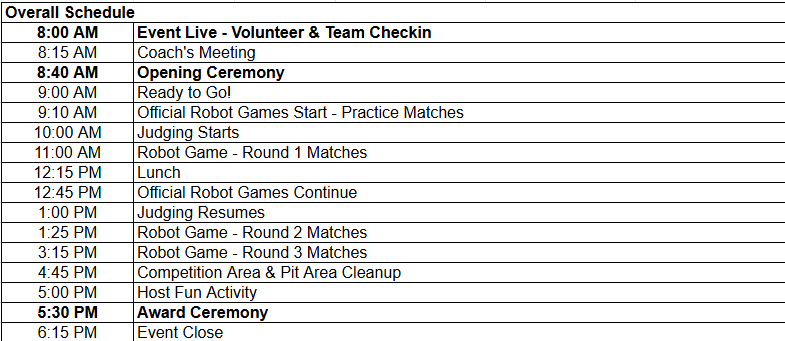 Payment is due on day of the event – cash or check made out to STHS Robotics.